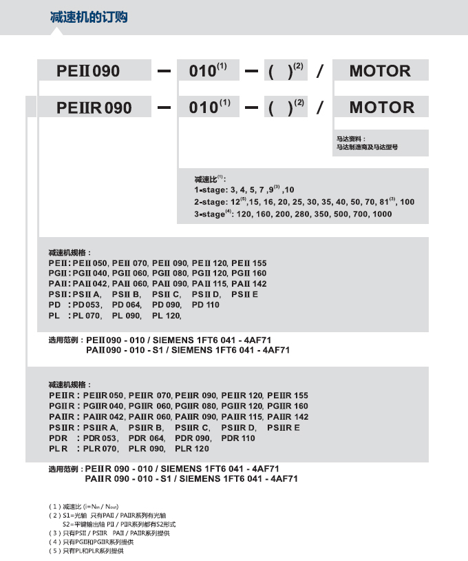 軸形式:S1光軸(只有PA Ⅱ/PAⅡR系列有光軸 )/S2附鍵直軸( PⅡ/PⅡR系列有S2形式 )